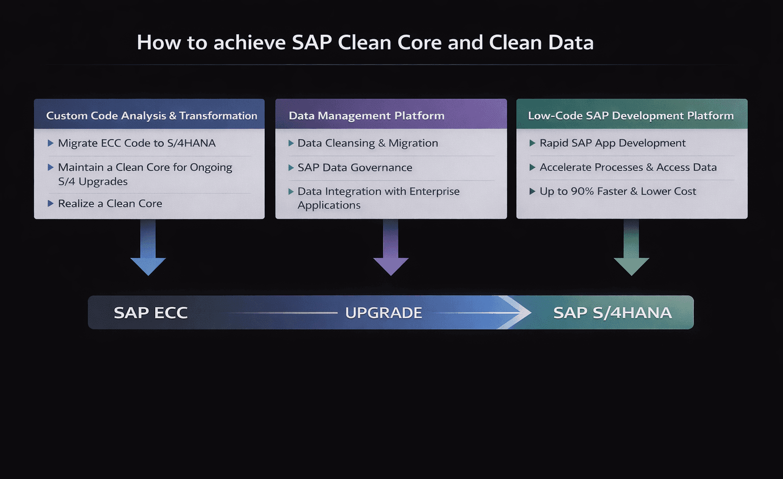 We help SAP customers achieve clean data and clean core with SAP in a simple and straightforward fashion. No marketing fluff, just practical solutions and services